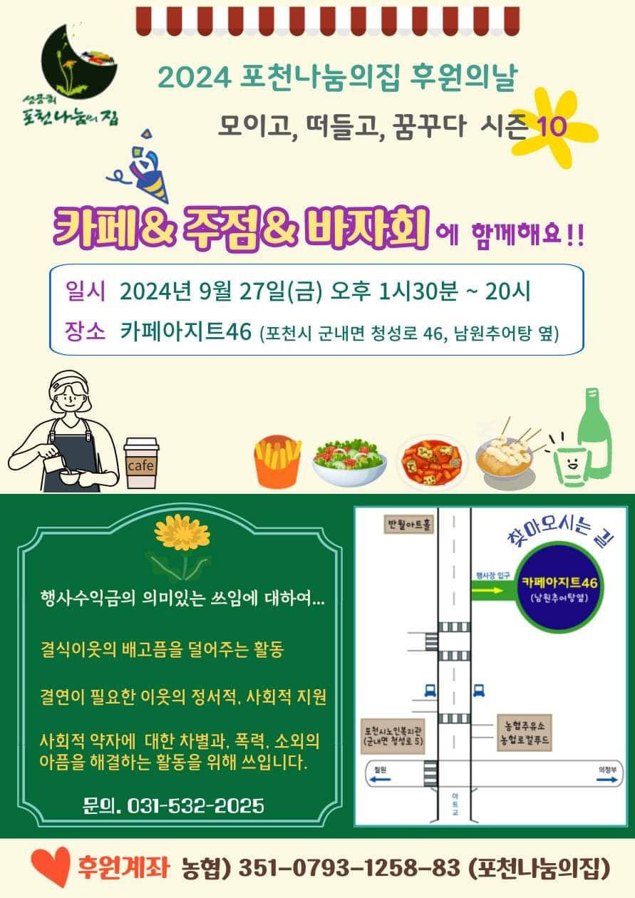우리 협력 기관인 포천나눔의집 후원행사가 있었습니다.