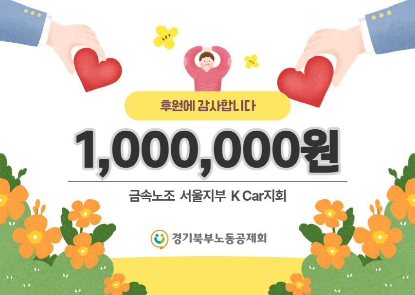 금속노조 서울지부 K Car 지회에서 후원금을 전달 해주셨습니다.